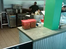 standing tables and a completely open kitchen so that you can see your entire meal made. Several chefs are grilling the meat and sautéing the vegetables in real time as your burrito or tacos are made. Chong is proud of being the owner/chef, so you are very likely to have him taking your order or making your food for you. You can take the food to go (it survives well in the bag if you live nearby) or eat it standing up at one of the two tables that are lined with various kinds of hot sauce.