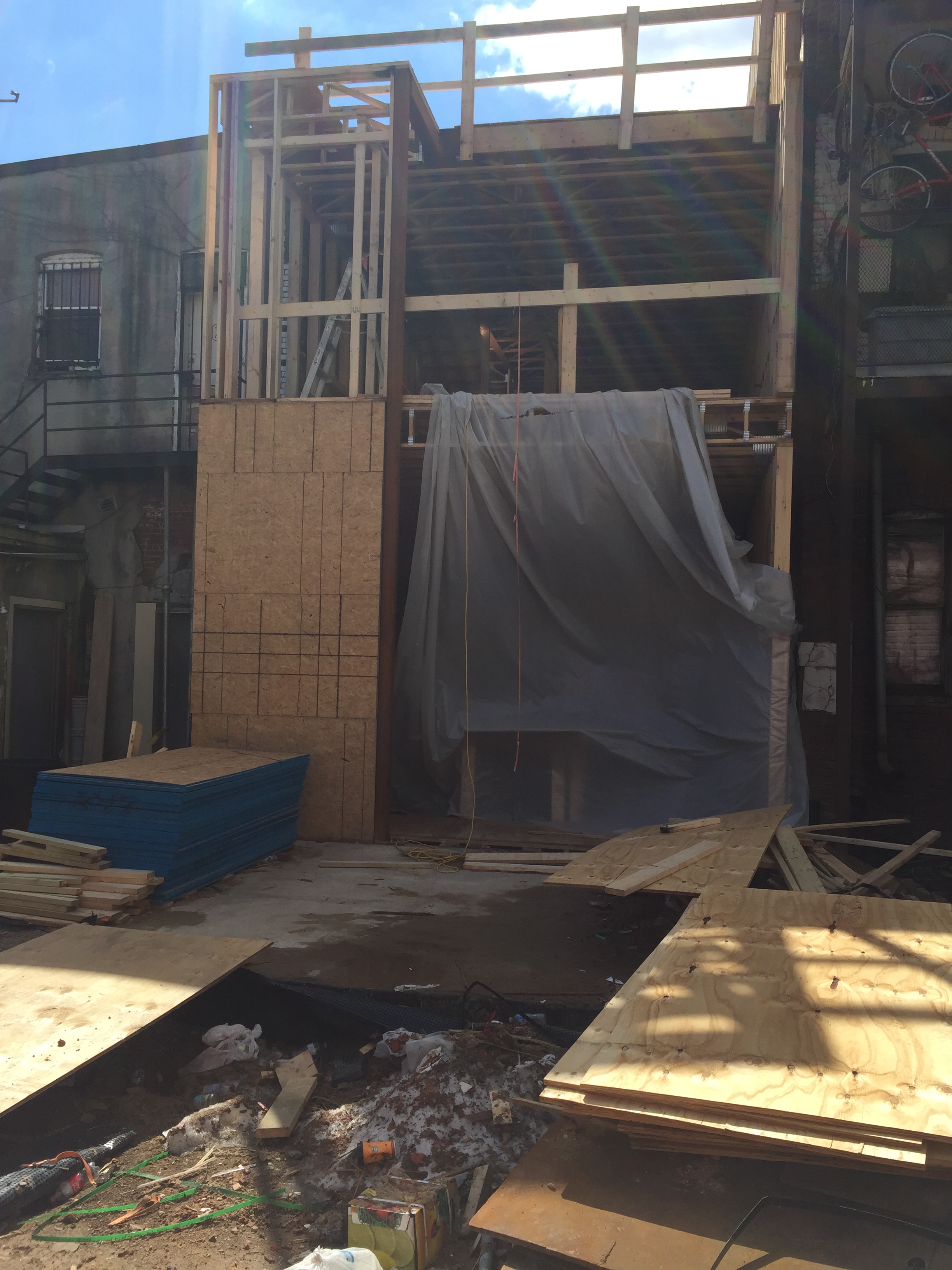 24 MarFare Well (406 H Street), the vegan bistro and bakery serving breakfast, lunch, and dinner by the owner of Sticky Fingers Bakery in Columbia Heights, is aiming to open by this spring or summer. However, before opening, the building needed a complete renovation and reconstruction. The building’s construction has significantly progressed over the past several weeks and a wood skeleton of the building is now up. There is still significant construction ahead, but the building is steadily progressing at this point.
