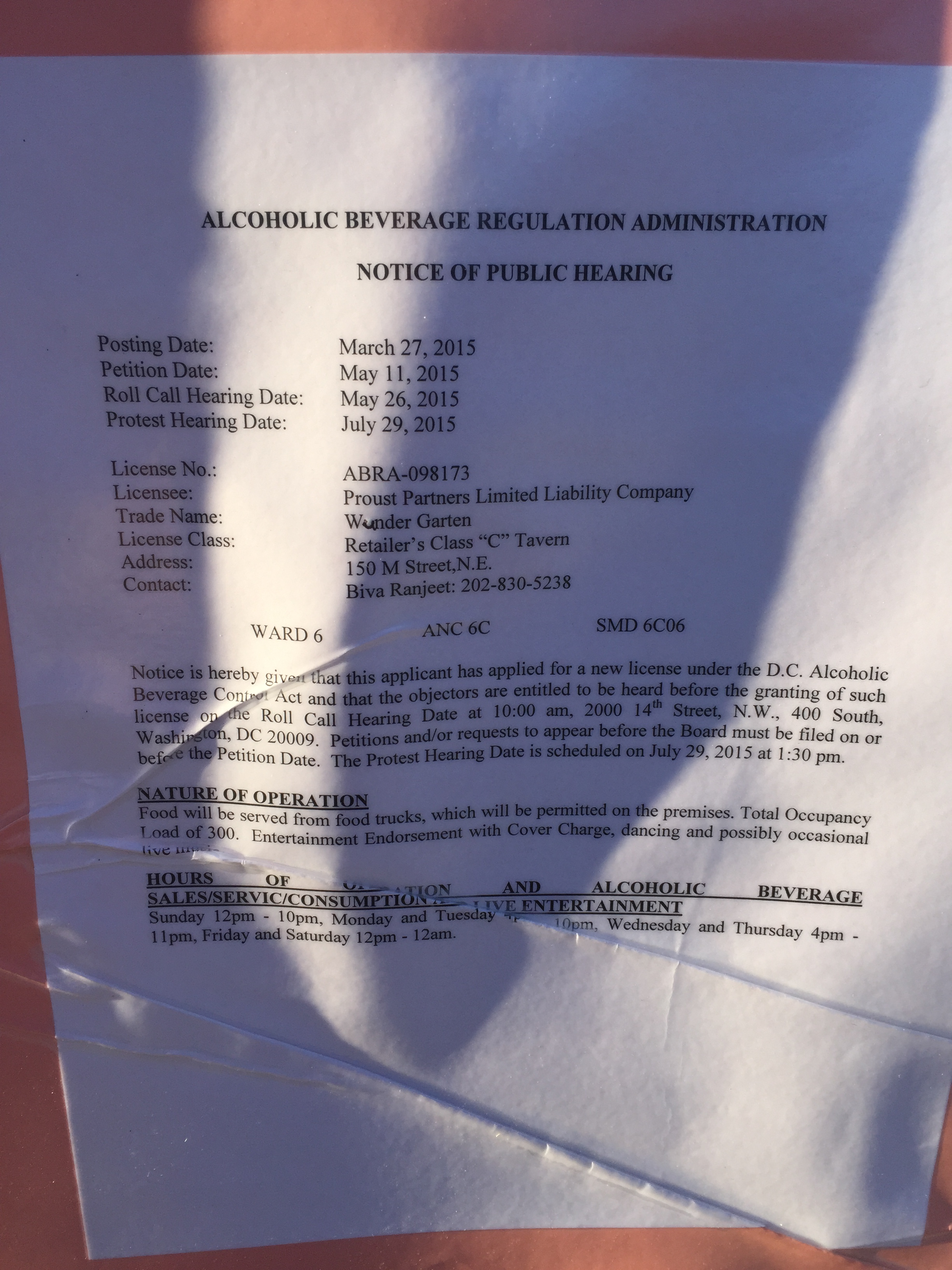 In a promising sign, Wunder Garten–the large proposed outdoor beer garden in NoMa–has applied for an alcohol license. You can read our preview post here.