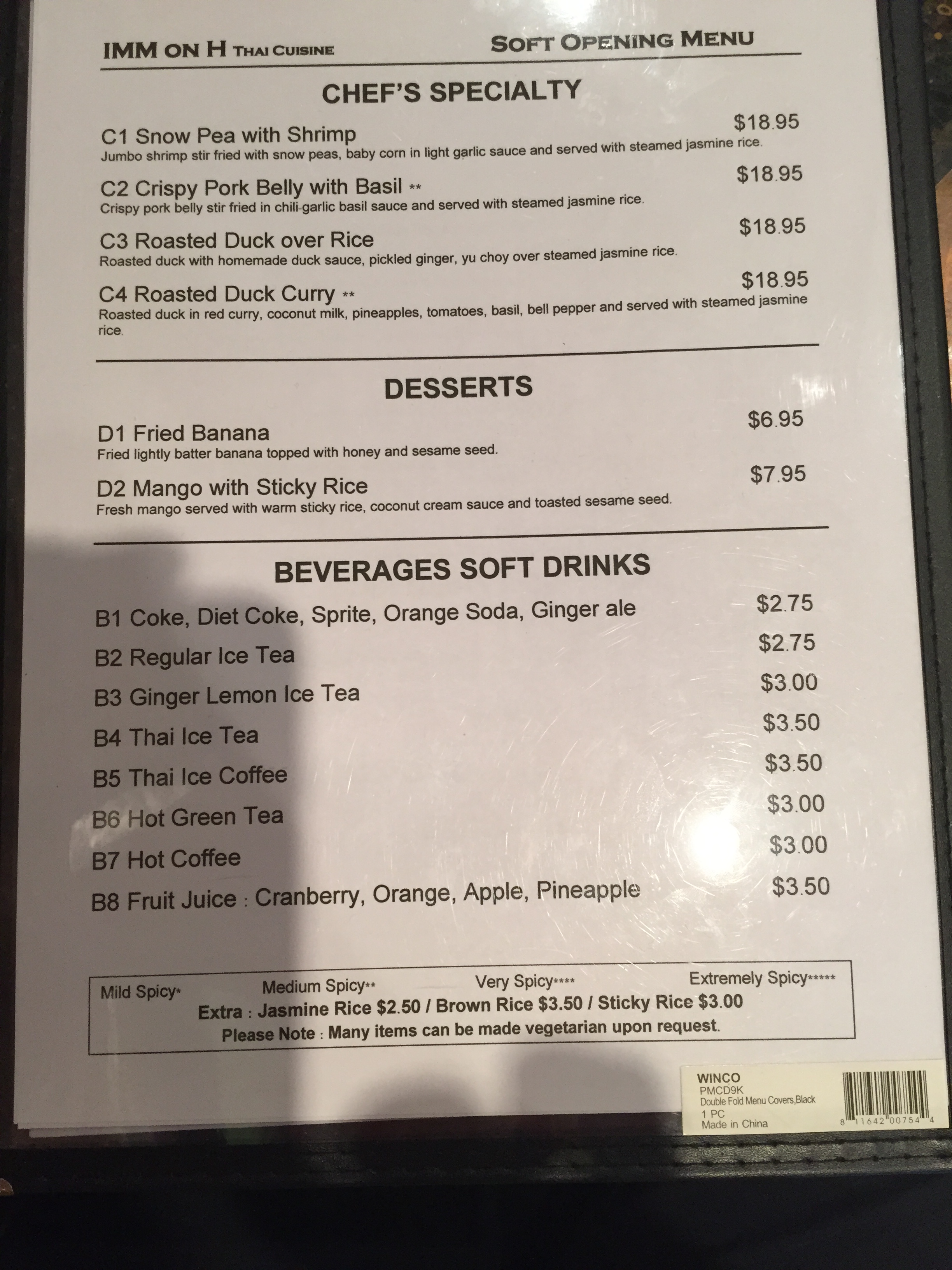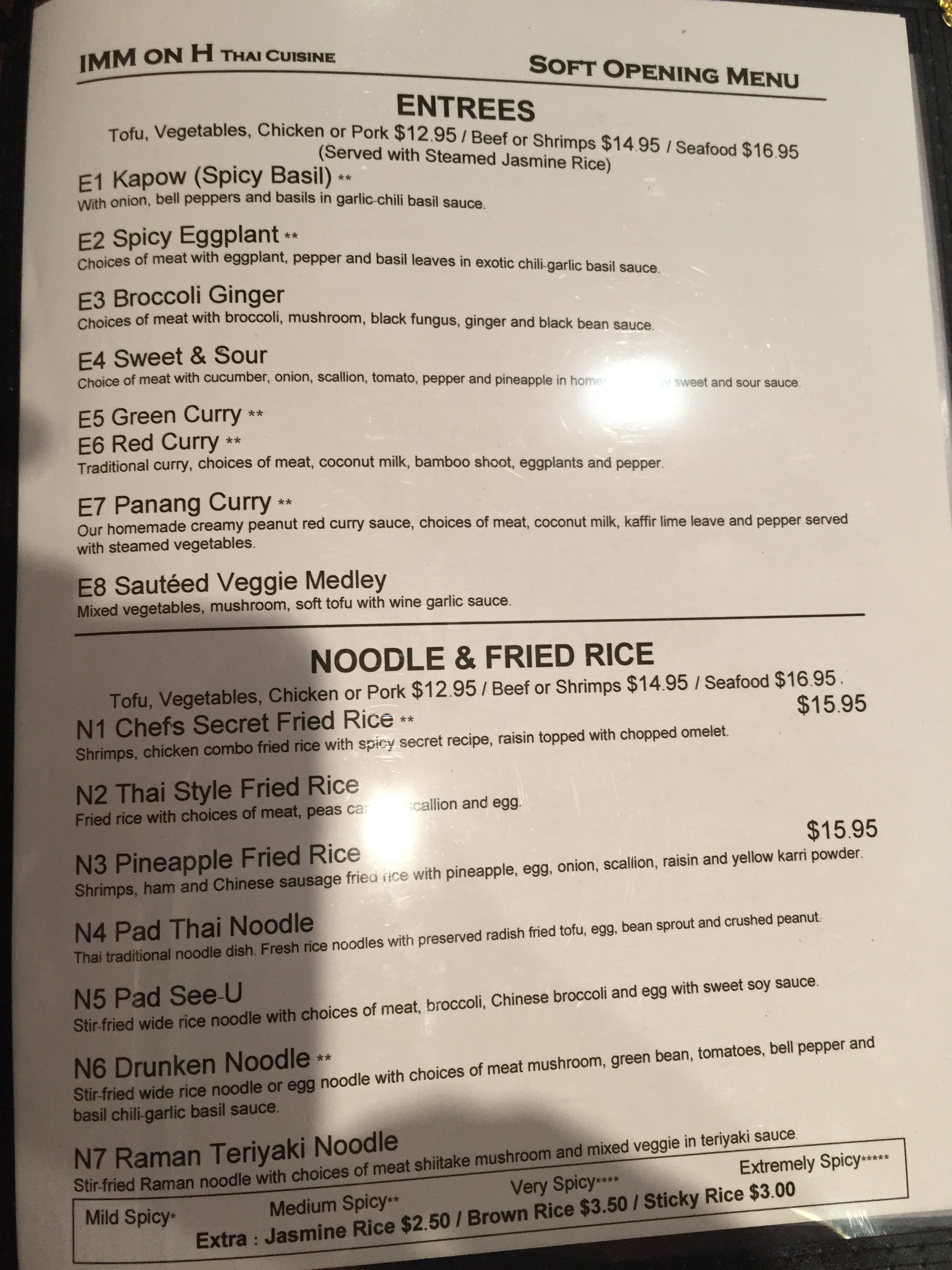 As mentioned last week, IMM Thai (1360 H Street, NE) will be holding a soft opening on H Street for the next several weeks prior to their grand opening. During this soft opening, they will have a limited menu (which turns out isn’t actually that limited, see below). We stopped by last night to check it out.