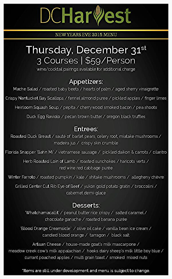 DC Harvest Unveils New Years Eve Menu