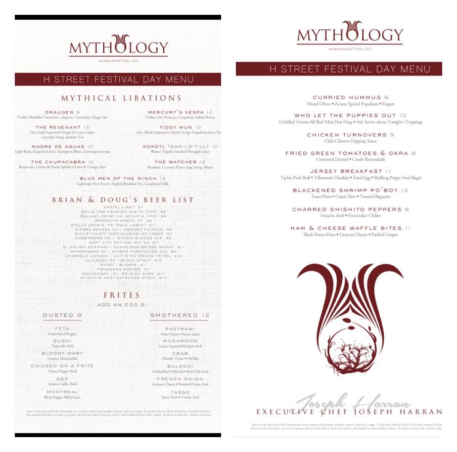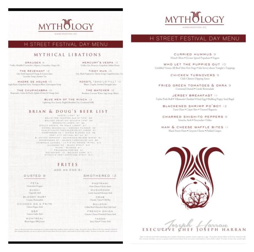 H Street Festival Menu for Mythology Restaurant and Lore Lounge