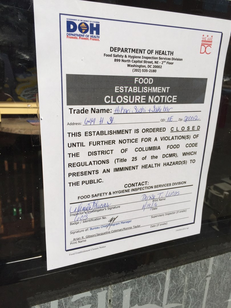 Hikari Sushi Closed by Health Inspectors
