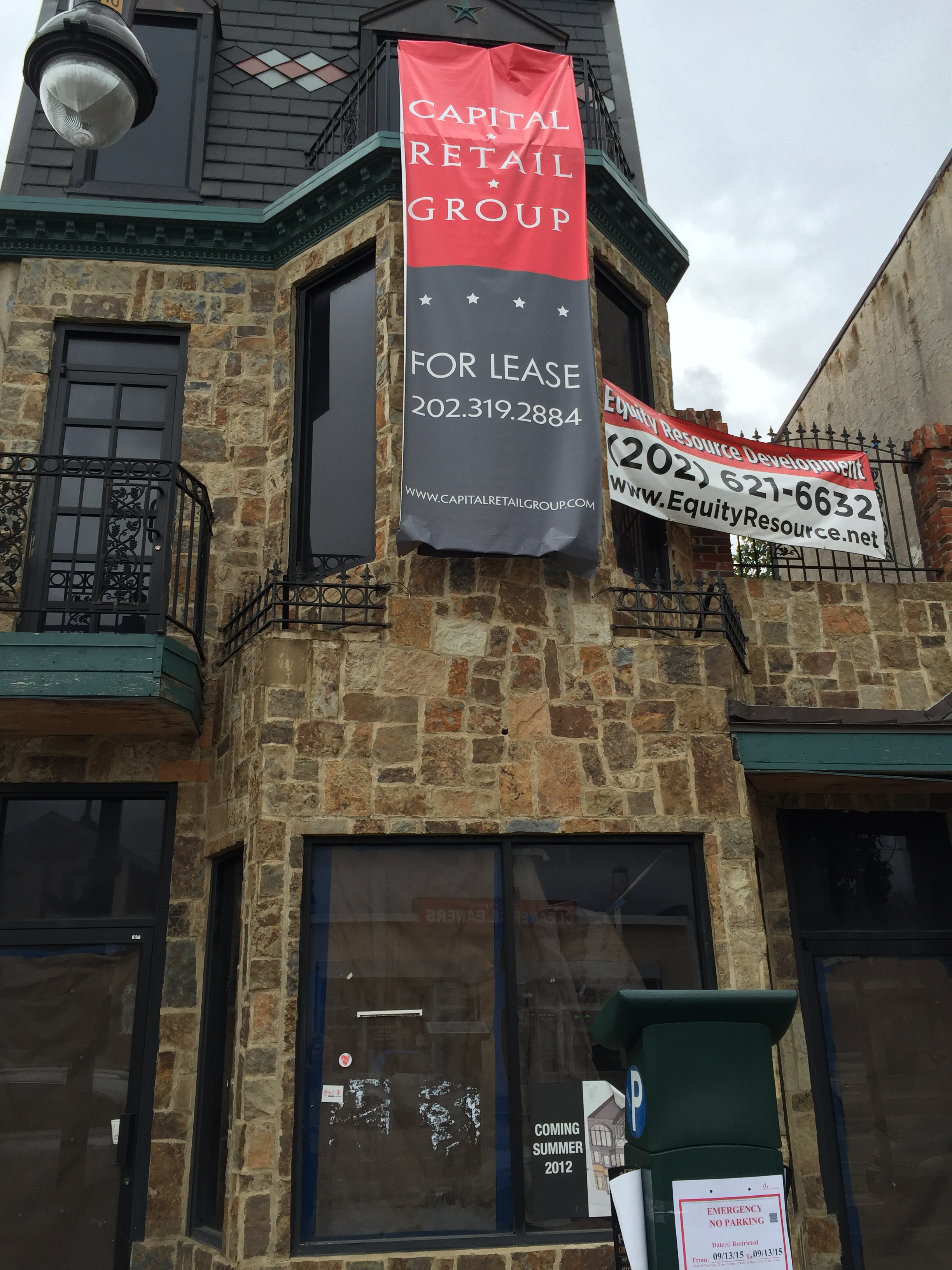 1309 H Street has been vacant for many years, despite a sign in the window saying that a new concept was coming in summer 2012. There had been reports that a spot by the owners of Carolina Kitchen was going to open in the space, but it now appears that isn’t going to happen as there is a for lease sign out front. The building’s exterior is quite a cool space, so we hope that something comes through soon.